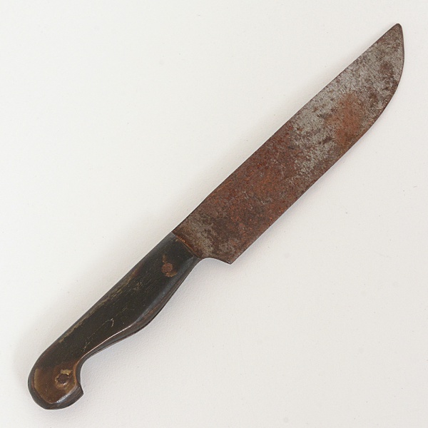 • CUTELARIA, uma (1) pequena faca, lâmina em aço, empunhadura em chifre, sem marca de cuteleiro aparente,sinais de uso e oxidação, medindo 14 cm comprimento, vide foto.