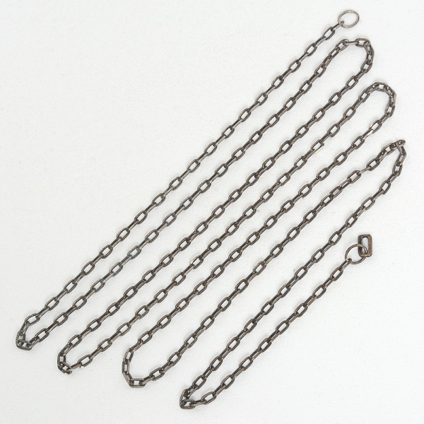 • JOIA, uma (1) corrente de elos, confeccionada em PRATA, medindo 66 cm comprimento, falta o fecho, pesoaproximado 4 gr., sinais de uso, vide foto.