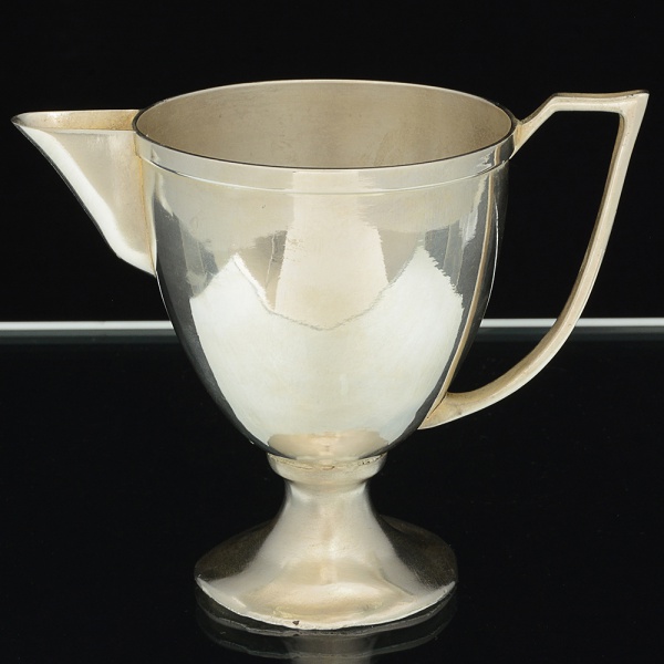 • METAL PRATEADO, uma (1) antiga cremeira de pé alto, marca PRATA EXCELSIOR, medindo 11 cm altura,sinais de uso, vide foto.