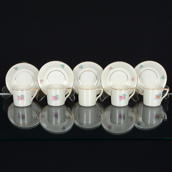 • PORCELANA, cinco (5) xícaras para café, ornamentação floral policromada, arremates com frisos a ouro, marcaKPM (Krister Porzellan-Manufaktur 1831 a 1920, fundada no ano de 1831 por Carl Franz Krister; em 1867 foipremiado na Exposição Internacional de Paris mesmo ano da sua morte; em 1920 mudou a razão social para KristerPorzellan-Manufaktur AG 1920 a 1952; em 1921 foi autorizado pelo governo a produzir moeda de porcelana (Notgeld);em 1945 depois da Segunda Guerra Mundial o território deixou de ser alemão e passou a integrar a Polônia; em 1952 foinacionalizada e passou a ser Fabryka Porcelany Krzysztof 1952 a 1995; em 1995 mudou a razão social para FabrykaPorcelany Krzysztof SA, funciona até a atualidade), Made in Poland, sinais de uso, vide foto.