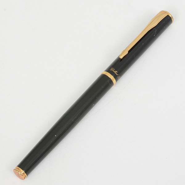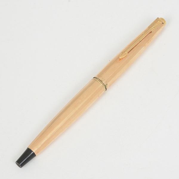 • COLECIONISMO, uma (1) caneta tinteiro, marca PARKER, Made in USA, confeccionada em metal espessada aouro 12K, usada, não testada e sem garantia, vide foto.