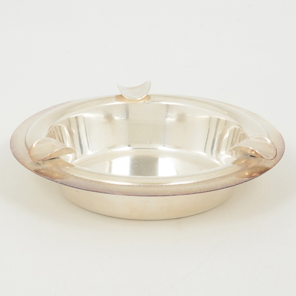 • METAL PRATEADO, um (1) cinzeiro liso, medindo 12,5 cm diâmetro, sinais de uso, vide foto.