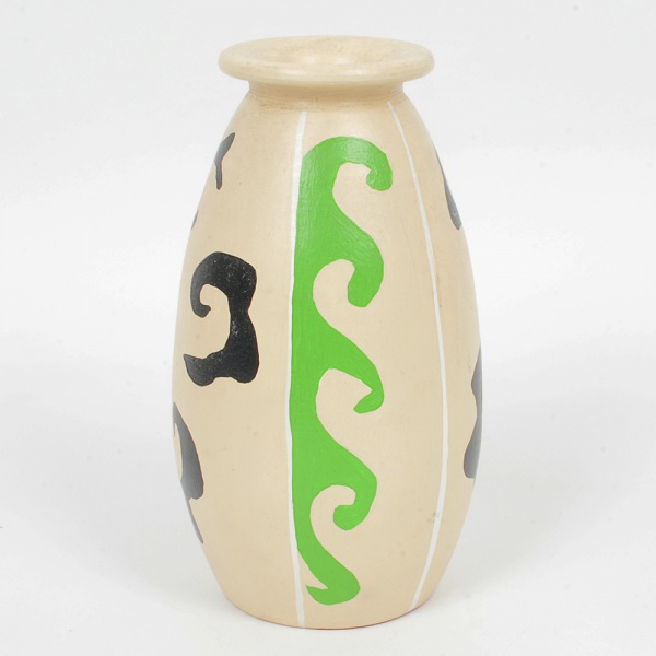 • CERÂMICA, um (1) vaso decorativo, pintado a mão em policromia, selo do Atelier L C JOÃO, medindo 23 cmaltura, vide foto.