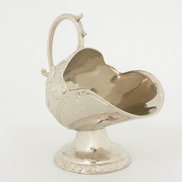 • METAL PRATEADO, um (1) porta brasas para acender lareira e forno a lenha, ornamentação relevada em rosas,medindo 14,5 cm altura, sinais de uso, vide foto.