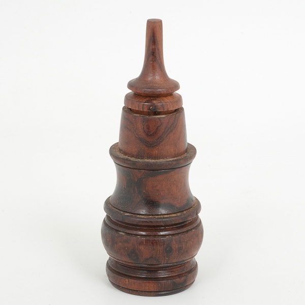 • DIVERSOS, um (1) paliteiro confeccionado em madeira torneada de jacarandá, medindo 15 cm altura, sinais deuso, vide foto.
