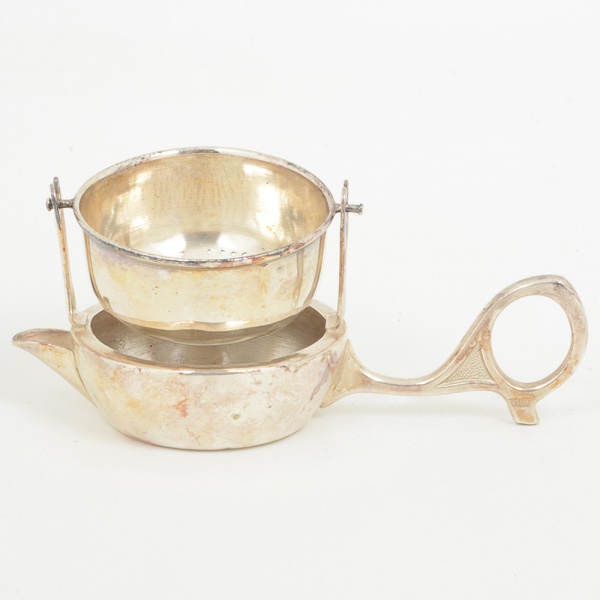 • METAL PRATEADO, um (1) infusor de chá individual, manufatura EBERLE (Abramo Eberle 1880, Monte Magrè1945, Caxias do Sul, veio com uma das primeiras levas de imigrantes italianos para o Brasil em 1884 junto com seuspais Giuzeppe Eberle e Luigia Zanrosso, seu pai abriu uma pequena funilaria mas como tinha que trabalhar na lavouraquem cuidava era a mãe e o pequeno Abramo ajudava na funilaria; em 1896 quando o pai resolveu vender a funilariapara concentrar os esforços da família na lavoura Abramo, com 16 anos de idade, se propôs a comprá-la do pai, em 1918já com o nome Abramo Eberle & Cia iniciou a fabricação de talheres e utensílios de mesa, morreu em 1945 com 65 anosde idade e os filhos deram continuidade aos negócios até 1984 quando venderam para o Grupo Zivi), medindo 12 cmcomprimento, sinais de uso, vide foto.