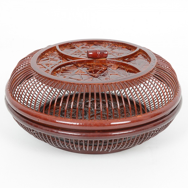 • DIVERSOS, um (1) recipiente com tampa, confeccionado em bambu trançado e envernizado, medindo 19,5 cmdiâmetro, vide foto.