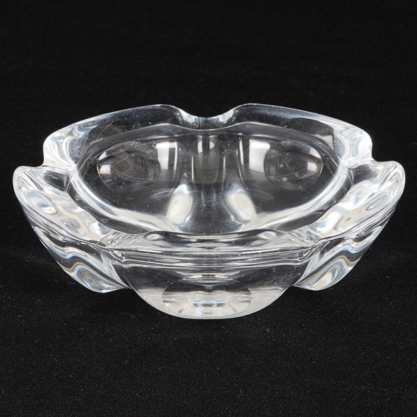 • CRISTAL, um (1) cinzeiro, incolor e translúcido, modelado em lóbulos, medindo 11 cm diâmetro, sinais de uso,vide foto.