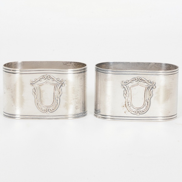 • METAL PRATEADO, par (2) porta-retratos ornados com escudo, medindo 5,5 x 3,5 x 3 cm, punção de manufaturanão identificada, sinais de uso, vide foto.