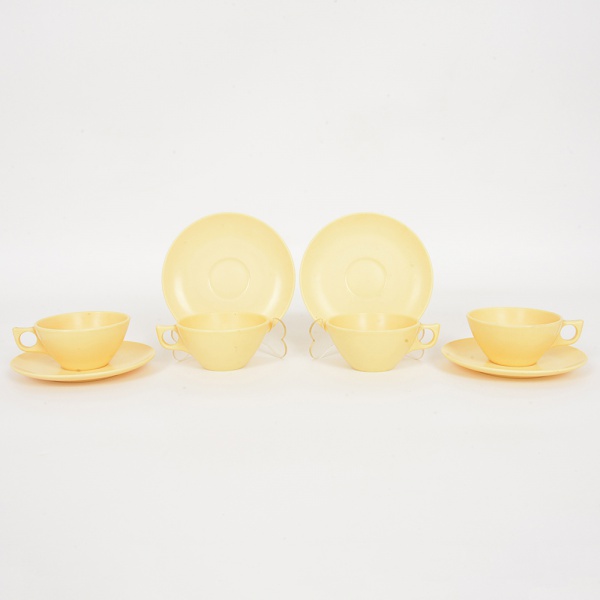 • DIVERSOS, quatro (4) xícaras para café, confeccionadas em polímero, tonalidade creme, marca GOYANA, sinaisde uso, vide foto.
