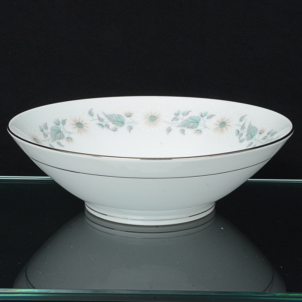 • NORITAKE, Nagoya - Japão(Fundada em 1904 pelos irmãos Ichizaemon e Toyo Morimura). Elegante bowl para salada/vegetais em porcelana japonesa da década de 1960/70. Padrão 'WELLESLEY 6214', produzido entre os anos de 1961 a 1976. Esmaltagem vítrea na cor branca, formato hemisférico assente sobre base circular, decorada com delicado padrão floral com flores brancas, folhas em suave tons de verde e outros tons pastéis, borda contornada por friso em platina. Marca da manufatura no verso. Med.: Alt. 7 x Diam. 22,5 cm.