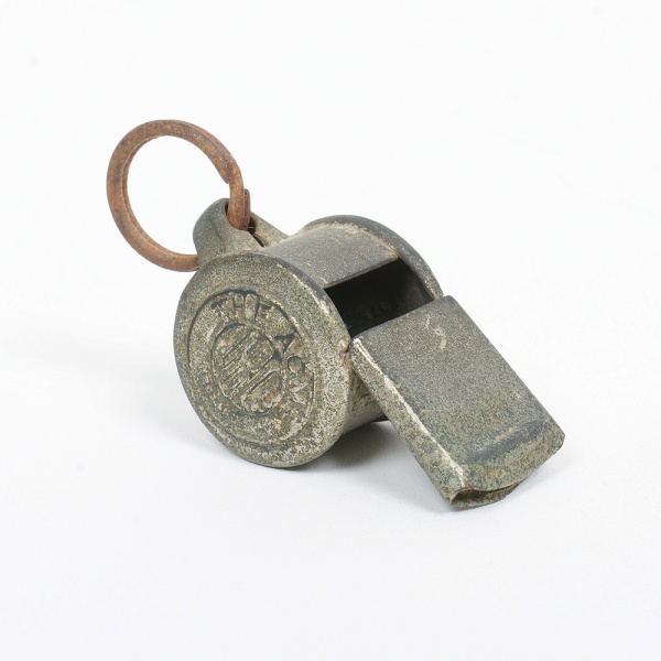 • DIVERSOS, um (1) antigo apito confeccionado em metal, funcionando, propaganda da THE ACME  J. H. Co. England, medindo 4,5 cm, sinais de uso, vide foto.
