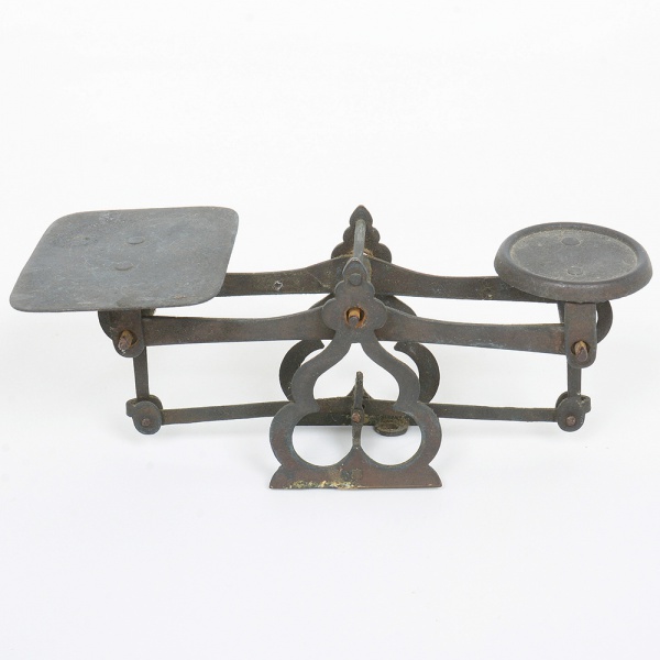 • DIVERSOS, uma (1) antiga balança, confeccionada em bronze, medindo 16 cm comprimento, sinais de uso, vide foto.