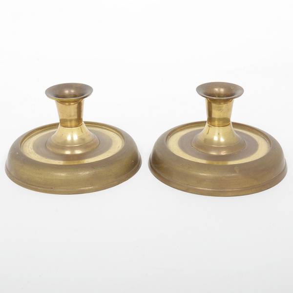 • BRONZE, par (2) castiçais para barco ou navio, medindo 13 cm diâmetro e 7 cm altura, sinais de uso, vide foto.