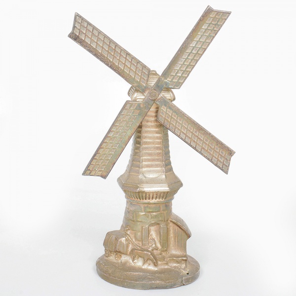 • DIVERSOS, um (1) cofre em metal, formato de moinho, possivelmente de origem holandesa, falta a chave, base possui rachado, medindo 29 cm altura até a hélice, sinais de uso, vide foto.