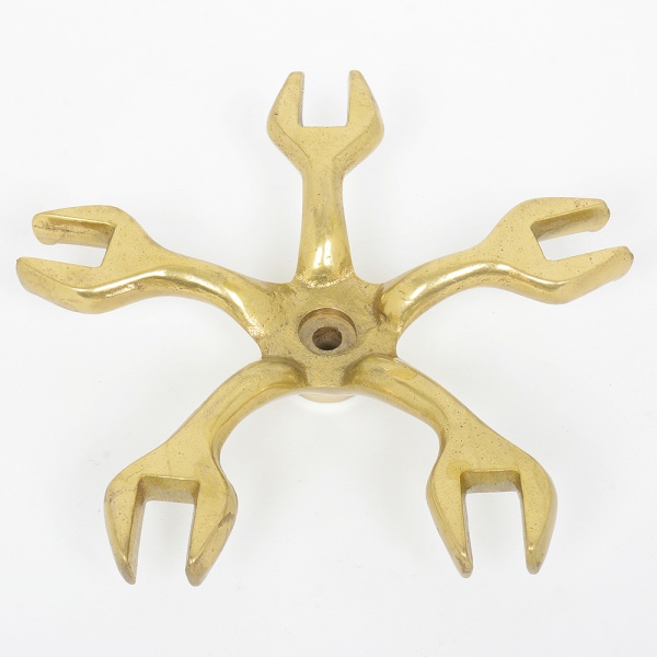 • DIVERSOS, uma (1) trempe para ferro de passar roupa, confeccionada em bronze, cabo adaptado, medindo 30 cm comprimento, sinais de uso, vide foto.