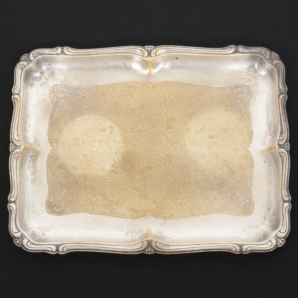 • METAL PRATEADO, uma (1) bilheteira retangular, ornamentação do fundo em baixo relevo em volutas e elementos vegetalistas, borda plissada e relevada em volutas, manufatura EBERLE (Abramo Eberle 1880, Monte Magrè 1945, Caxias do Sul, veio com uma das primeiras levas de imigrantes italianos para o Brasil em 1884 junto com seus pais Giuzeppe Eberle e Luigia Zanrosso, seu pai abriu uma pequena funilaria mas como tinha que trabalhar na lavoura quem cuidava era a mãe e o pequeno Abramo ajudava na funilaria; em 1896 quando o pai resolveu vender a funilaria para concentrar os esforços da família na lavoura Abramo, com 16 anos de idade, se propôs a comprá-la do pai, em 1918 já com o nome Abramo Eberle & Cia iniciou a fabricação de talheres e utensílios de mesa, morreu em 1945 com 65 anos de idade e os filhos deram continuidade aos negócios até 1984 quando venderam para o Grupo Zivi), medindo 25,5 x 19,5 cm, sinais de uso, vide foto.