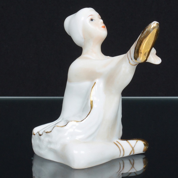 • ESCULTURA, uma (1) representando bailarina, confeccionada em porcelana policromada, arremates a ouro, inspirada na obra do design espanhol Marti Fiero, medindo 12 cm comprimento, ideal para coleção de bibelô, vide foto.