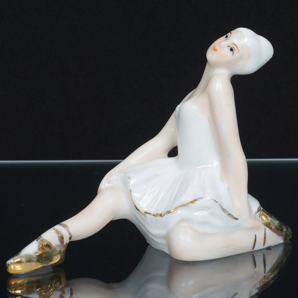 • ESCULTURA, uma (1) representando bailarina, confeccionada em porcelana policromada, arremates a ouro, inspirada na obra do design espanhol Marti Fiero, medindo 11 cm comprimento, ideal para coleção de bibelô, vide foto.
