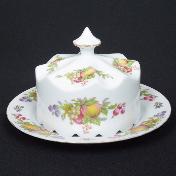 • PORCELANA, uma (1) queijeira com presentoir, ornamentação policromada com flores e frutos, arremates a ouro, medindo 25,5 cm diâmetro, desgastes na douração, manufatura GERMER (fundada em 1950 em Timbó, SC, como fabricante de acessórios para maquinário têxtil; em 1964 passou a produzir componentes para lançadeiras; em 1969 passou a produzir isoladores elétricos; em 1978 quando assumiu o controle da POLOVI Campo Largo, PR passou a produzir porcelana de mesa; em 1988 modernizou a fabrica com a aquisição de novos fornos, atualmente é a segunda maior produtora de porcelana do Brasil), sinais de uso, vide foto.