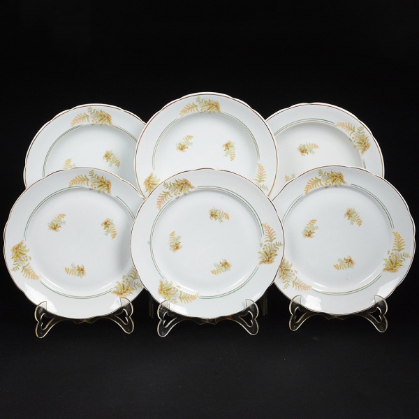 • PORCELANA, seis (6) pratos, ornamentação policromada em elementos vegetalistas, arremates com frisos a ouro,manufatura REAL (Mauá, SP, 1943 a 1994), sendo: 3 rasos medindo 24 cm diâmetro e 3 fundos medindo 23 cmdiâmetro, sinais de uso, vide foto.