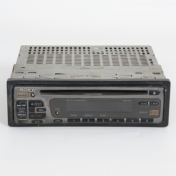• VEÍCULOS, um (1) aparelho de CD e rádio AM/FM, marca SONY, modelo CDX-3167, acompanham o chicote eo controle originais, frente destacável, usado, não testado e sem garantia, vide foto.