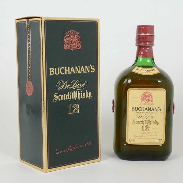 • BEBIDA, uma (1) garrafa de Whisky escocês BUCHANAN S, 12 anos de Luxe, teor 43%, capacidade 1 litro,lacrado e com evaporação, vide foto.
