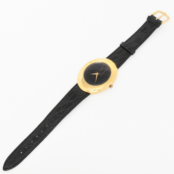 • RELÓGIO, um de pulso, marca DOMI  Paris, caixa em metal dourado, medindo 37 x 45 mm, pulseira em couro, usado, não testado e sem garantia, vide foto.