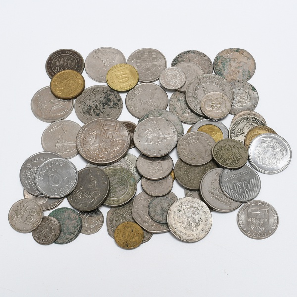 • NUMISMÁTICA, Nacional e Estrangeira, mais de cinquenta (+50) moedas de diversos períodos, metais, valores, países e estados de conservação, CAÇA AO TESOURO, todas circuladas, vide foto.