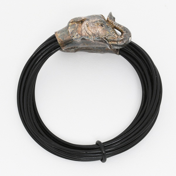 • JOIA, uma (1) pulseira, dita rabo de elefante, ponteiras em PRATA representando cabeça de elefante, tamanho regulável, peso total 33 gr., sinais de uso, vide foto.