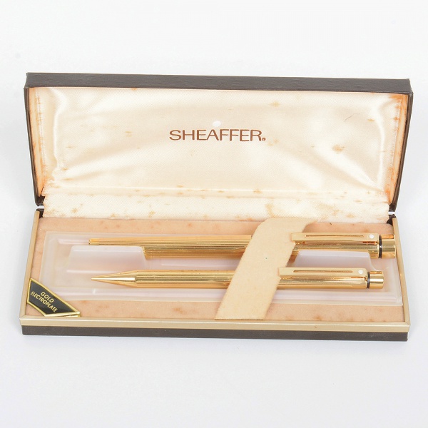 • COLECIONISMO, estojo com dois (2) itens: 1 caneta e 1 lapiseira, marca SHEAFFER, espessadas a ouro, brinde do CITIBANK, vide foto.