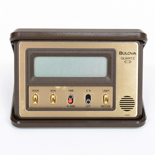 • RELÓGIO, um (1) de viagem ou cabeceira, marca BULOVA (Joseph Bulova Company, relojoaria fundada em 1875 pelo imigrante da Tchecoslováquia Joseph Bulova na cidade de New York, USA; em 1912 inaugurou a sua fabrica em Biel na Suíça; em 1923 virou Bulova Watch Company; em 1979 tornou-se parte da Loews Corporation; em 2007 foi vendido para a Citizen; atualmente no Brasil são distribuídos pela Magnum Relógios), clock, quartz, funcionando e na caixa, porem demanda bateria, brinde do CITIBANK, vide foto.