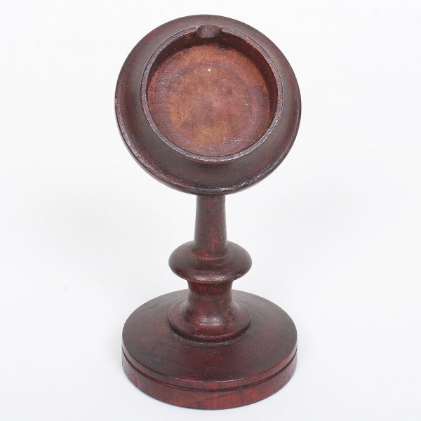 • RELÓGIO, um (1) despojador/expositor para relógio de algibeira, confeccionado em madeira torneada, medindo 14 cm altura, sinais de uso, vide foto.