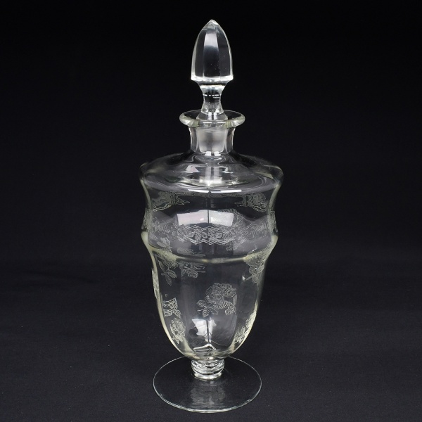 • Belíssima licoreira executada em cristal europeu, diáfano e incolor; bojo oval alongado, fuste em anel e base circular, gargalo evertido, tampa de formato ovoide facetado; ricamente gravado com flores e faixa contínua de motivo vegetalista. Medidas: Alt.: x Diam.: