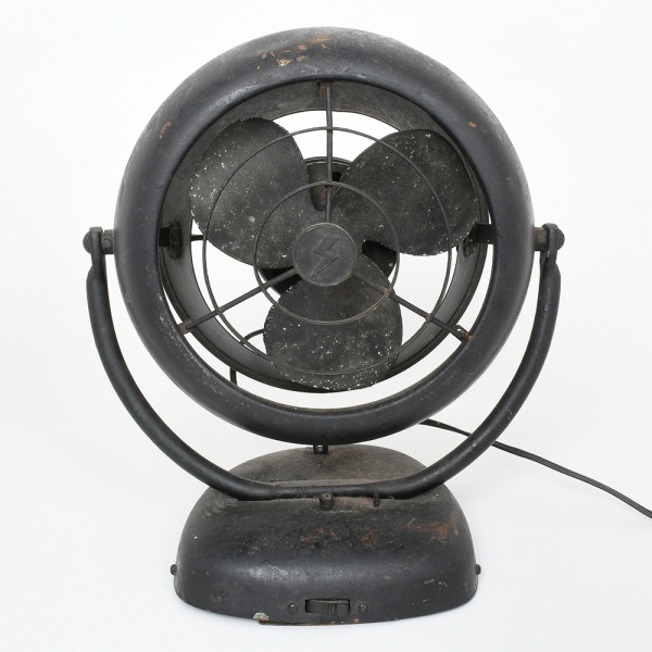 • Ventilador elétrico de mesa, com estrutura em metal, composto por base semicircular, suporte articulado em arco e corpo circular com grade frontal em arame e hélice tripla metálica. Motor elétrico interno, com acionamento por chave frontal deslizante. Placa de identificação inferior indicando fabricante WAWM, com especificação Circulador de Ar, modelo 10, tensão 110/220 V. Não está funcionando. Fio está partido, necessita refazer parte elétrica. Estado de conservação conforme fotografias. Medidas: Alt.: x Diam.: