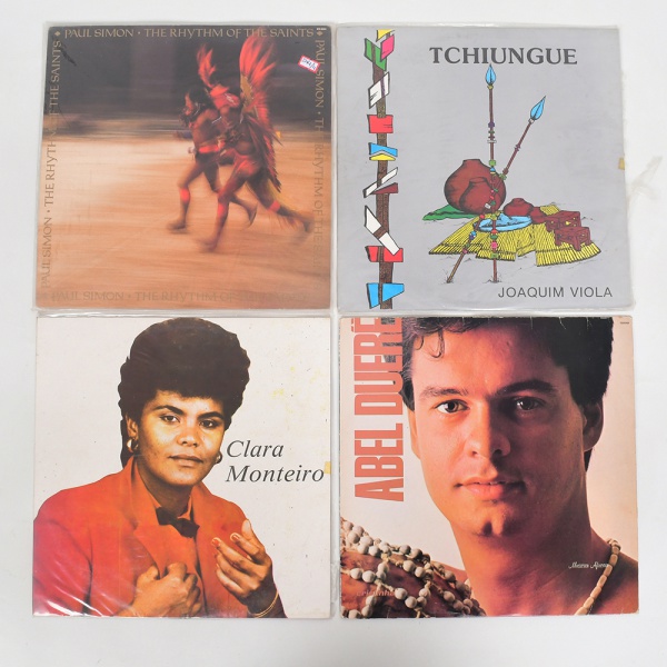 • MÚSICA, quatro (4) LPs em vinil: Clara Monteiro; Abel Duerë; Joaquim Viola; Paul Simon, todos aparentemente em bom estado, usados e sem garantia, vide foto.