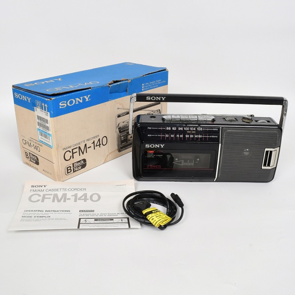 • ELETRÔNICO, um (1) Rádio AM/FM e Cassete, marca SONY, modelo CFM-140, acondicionado na caixa, possui fôlder com instruções de uso, usado, não testado e sem garantia, vide foto.