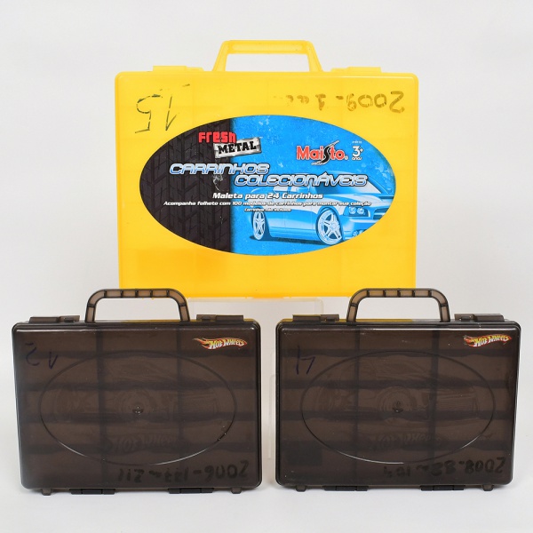 • BRINQUEDOS, três (3) caixas vazias para acondicionar carrinhos miniatura da HOT WHEELS, sendo: 1 com capacidade para 24 peças e 2 com capacidade para 15 peças cada, sinais de uso, vide foto.