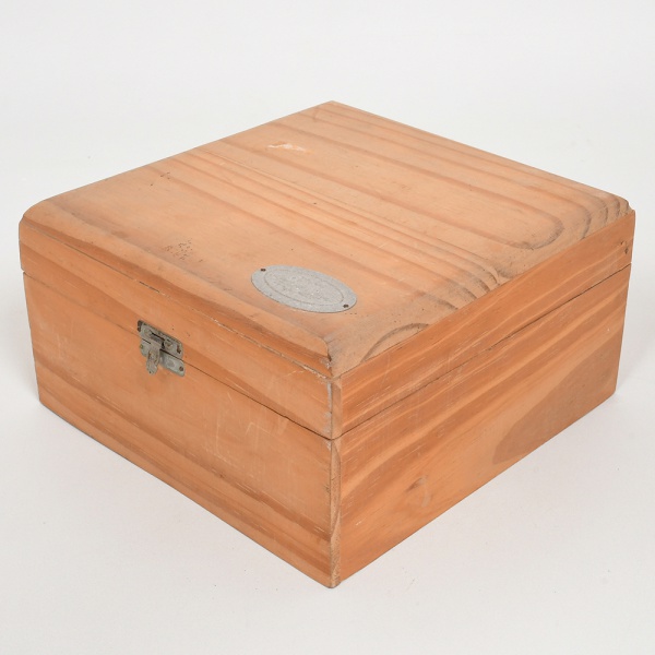 • DIVERSOS,  uma (1) caixa vazia da Perfumaria ÁGUA DE CHEIRO, confeccionada em madeira, medindo 18 x 17,5 x 9,5 cm, sinais de uso, vide foto.